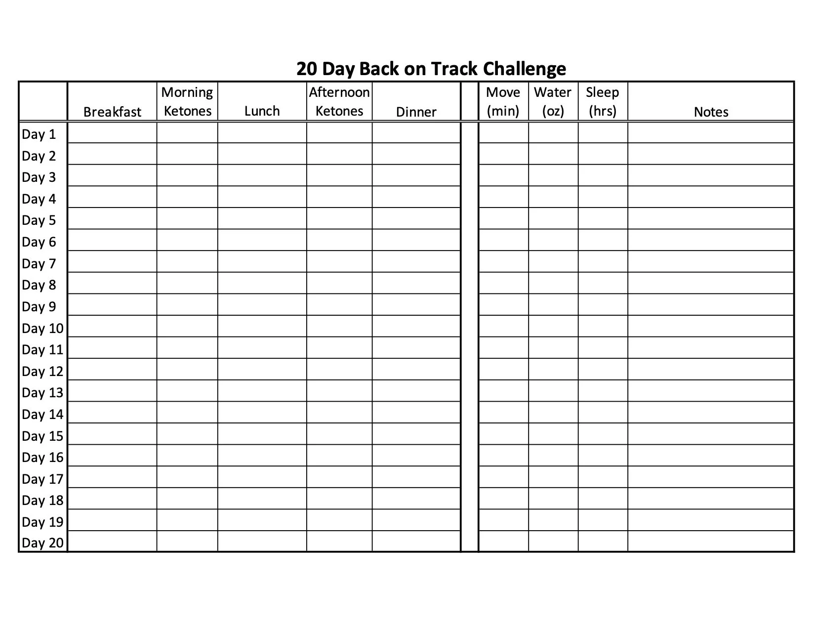 Add in any notes you’d like - how many hours you intermittent fasted, unusual activities, when you hit each daily challenge, how you felt etc!