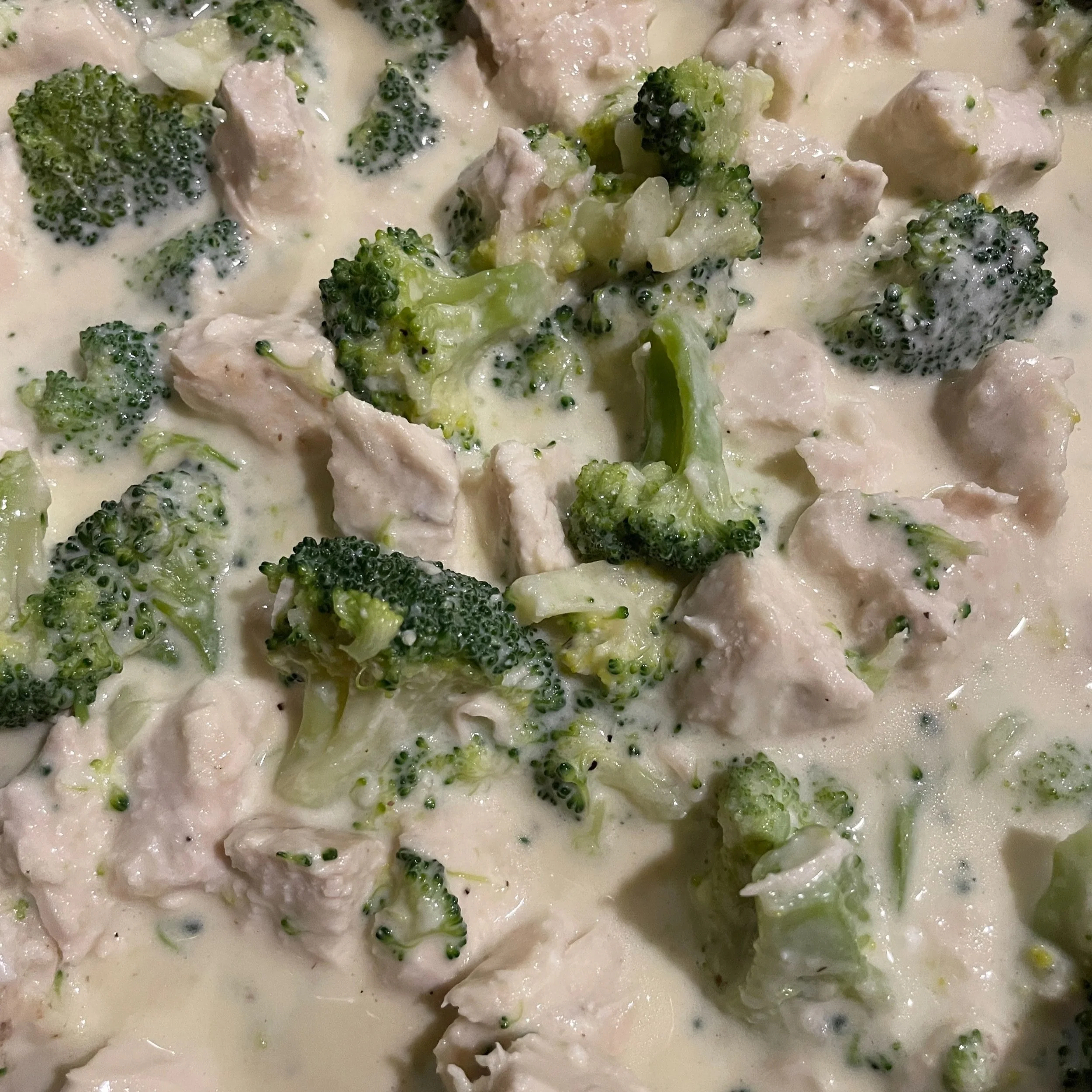 Combine ingredients for sauce and cook over low heat. Add in Chicken and Broccoli florets and serve sauce over pasta or Riced Cauliflower.